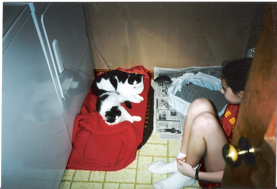 Cinci, however, was not amused by this little ball of fur who purred continuously for the first two weeks. We quarantined him in the laundry room on the scrap of red blanket I had left from my college days that was used by every animal we ever had, and gradually she decided to tolerate him.
